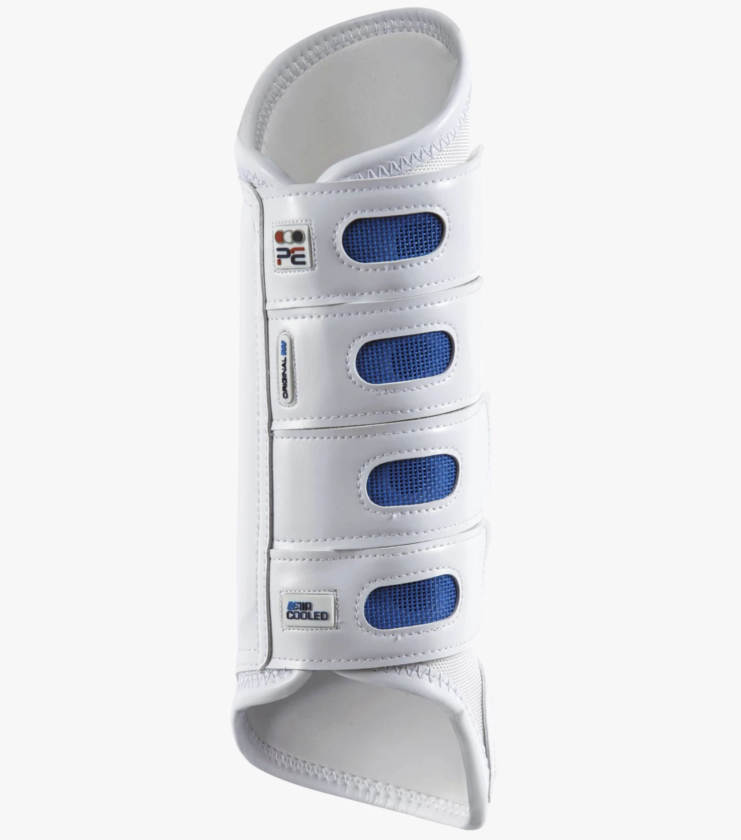 How do Air Cooled Eventing Boots work? As the horse gallops air passes through the front vents, circulates and exits out of the side vents. This process allows a constant stream of cold air to pass through over the tendons, keeping them cool.