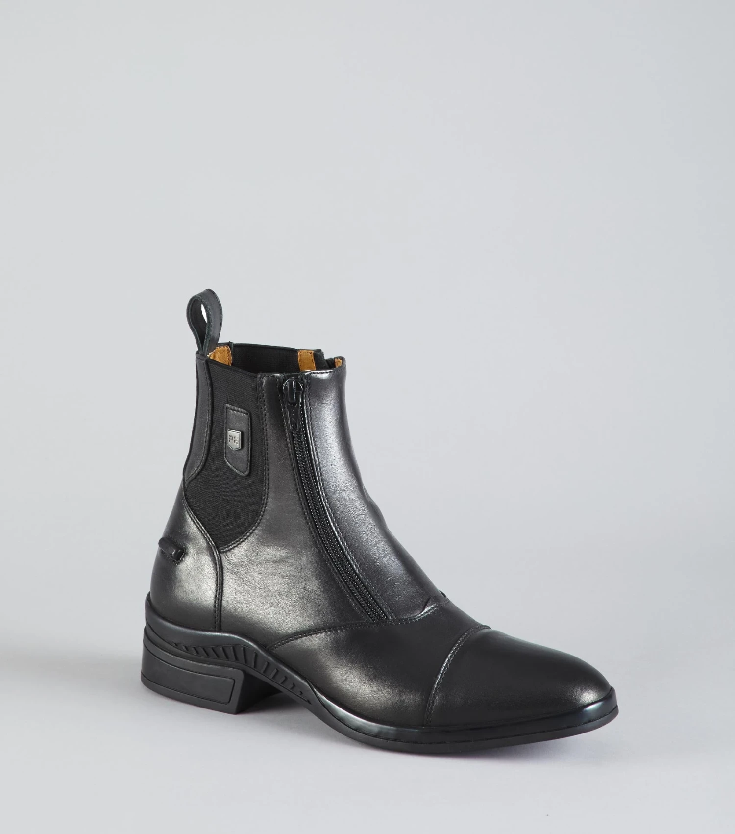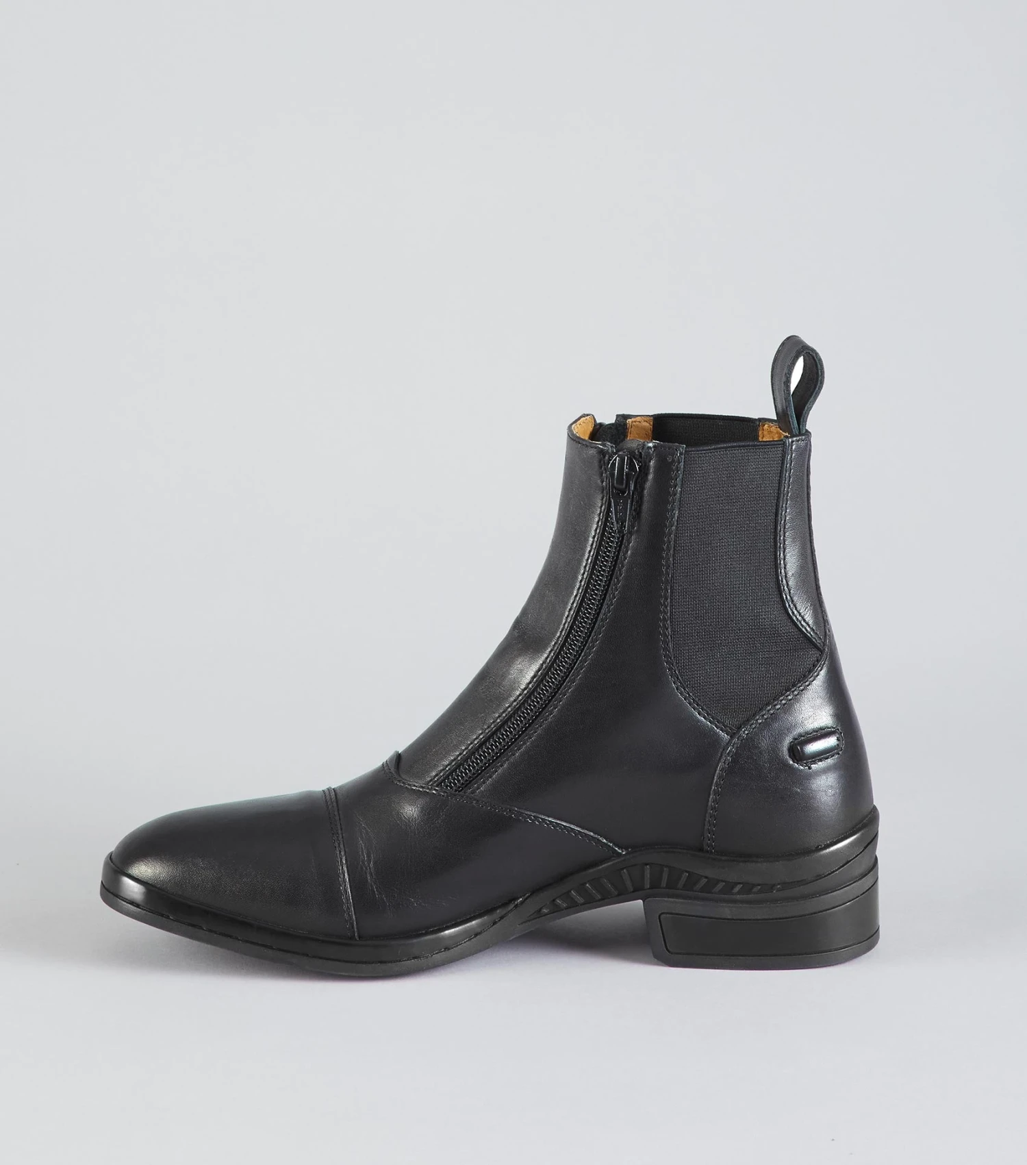 Featuring two distinctive zip fastenings at the front of this contemporary paddock/ riding boot the central front panel offers a sleek, unspoiled & streamlined finish.