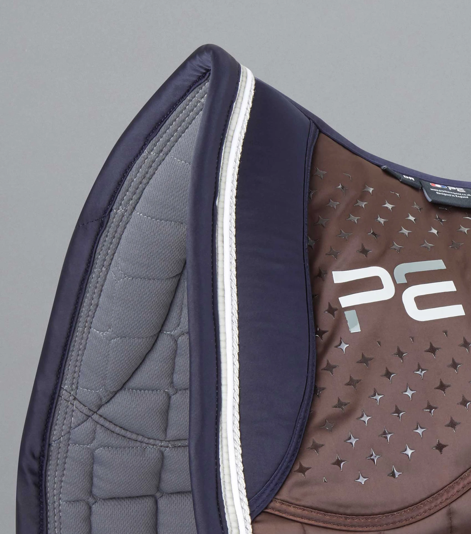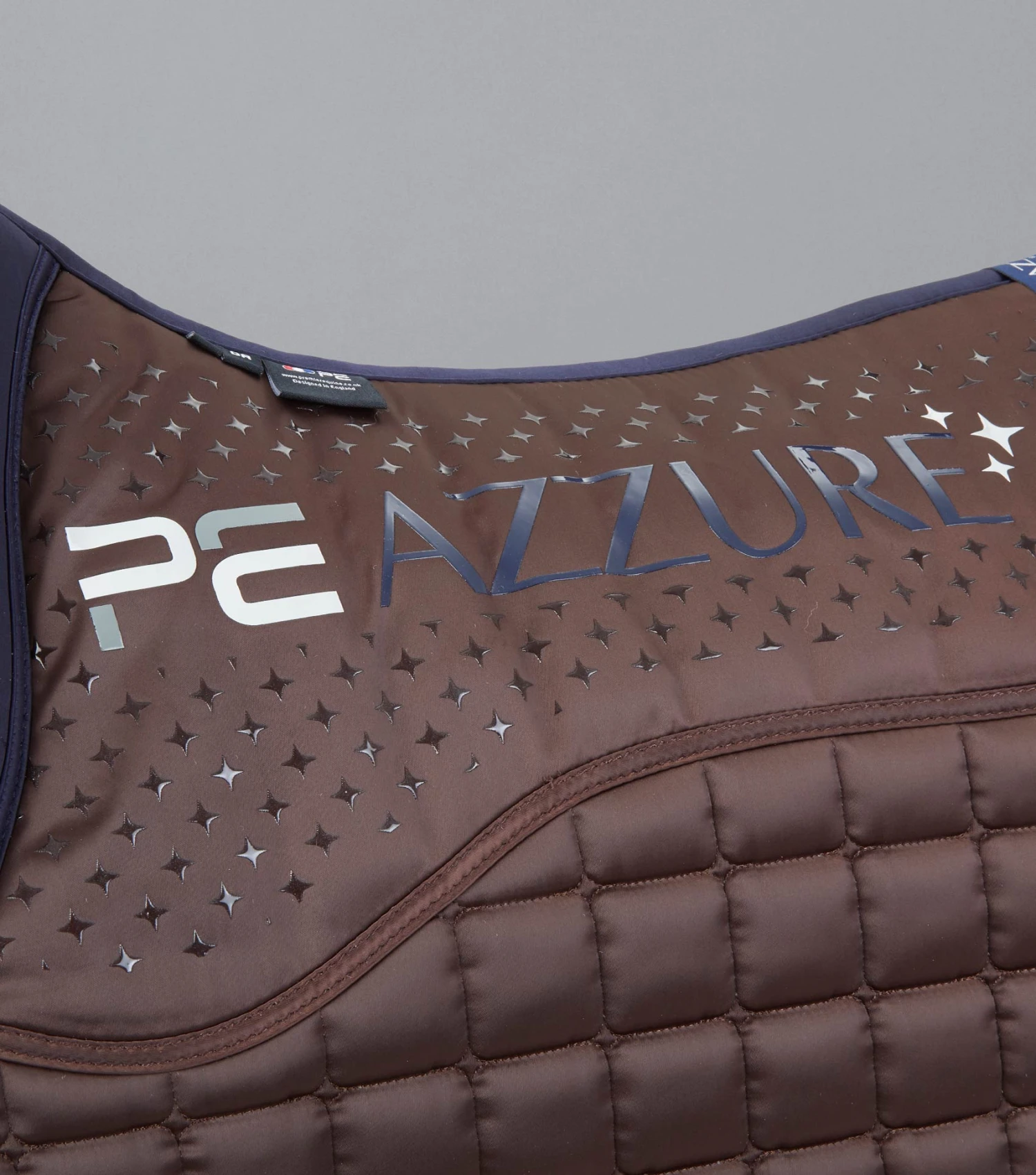 Classic elegance is signature to the ultra-luxe Azzure saddle pad. Crafted with skill and optimum design features this unique style delivers not only on appearance but on its ability to provide engineered functional detail.Â