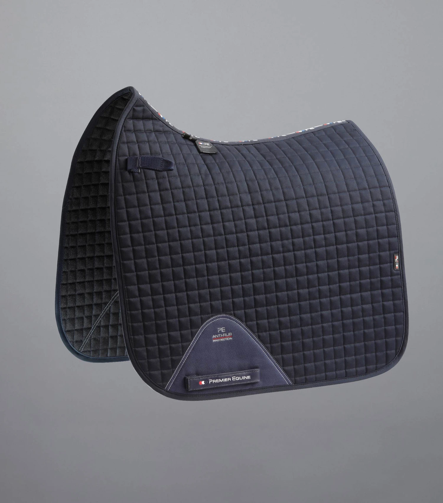 With a desirable quilting this dressage saddle pad has been crafted with 100% quality cotton for comfort and performance. Wicking fibres present in the filling draw moisture away from the skin and a highly absorbent Air Tech mesh lining will keep your horse comfortable during training or competition.