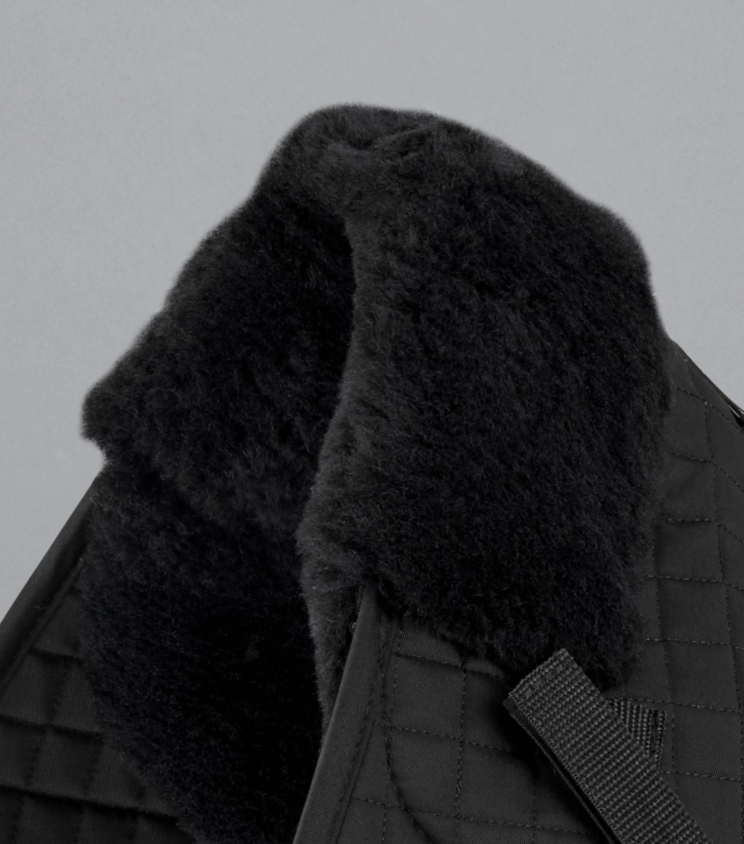 Merino wool knitted onto cotton yarn gives you all the wool you need with no skin attached. The natural fibres of wool are less likely to cause skin reactions or allergies. Wool has the ability to absorb up to 30% of its own weight in moisture, keeping your horse dry and comfortable. Real wool is still one of the most technically advanced materials in the world and probably the best you can use under a saddle pad.