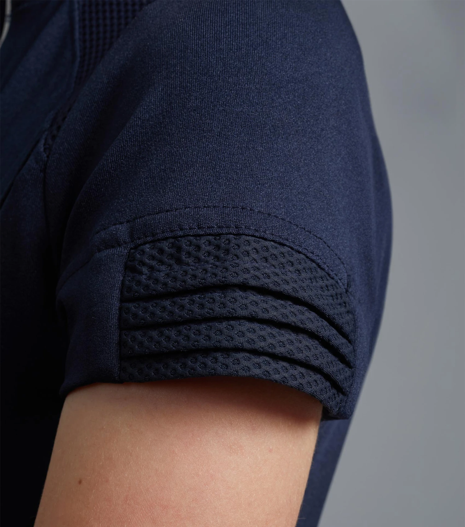 Highly breathable, this short sleeved children’s training top incorporates ventilation panelling to the front of the shoulder and over the central upper back panel for optimum airflow during riding / training.