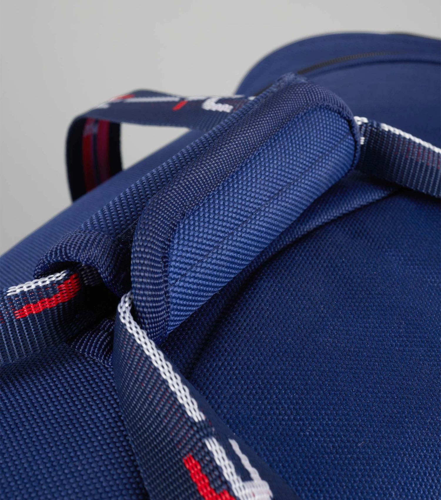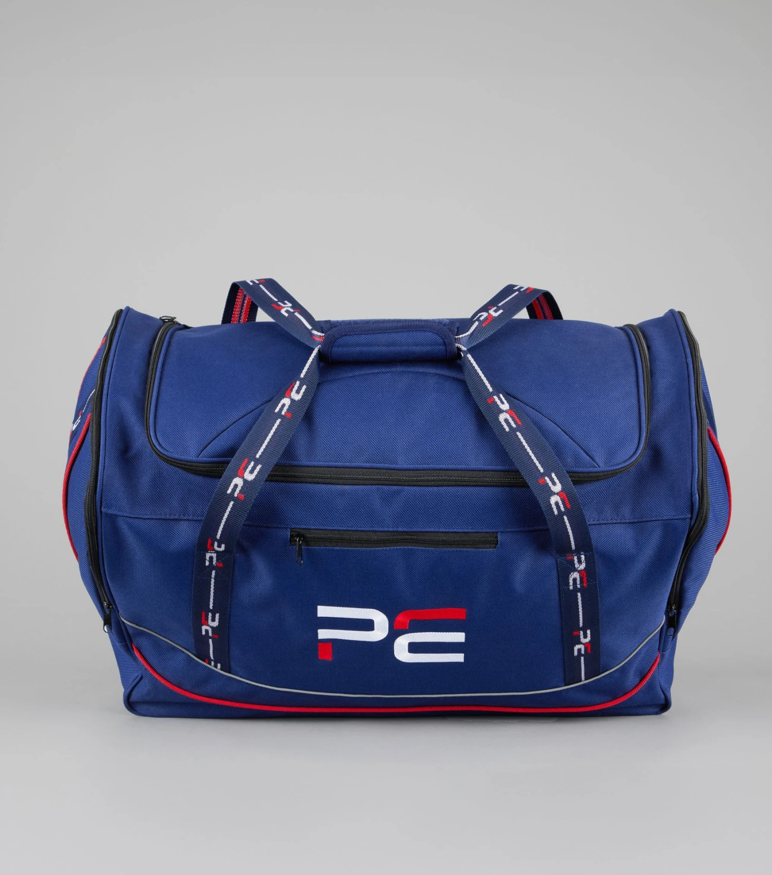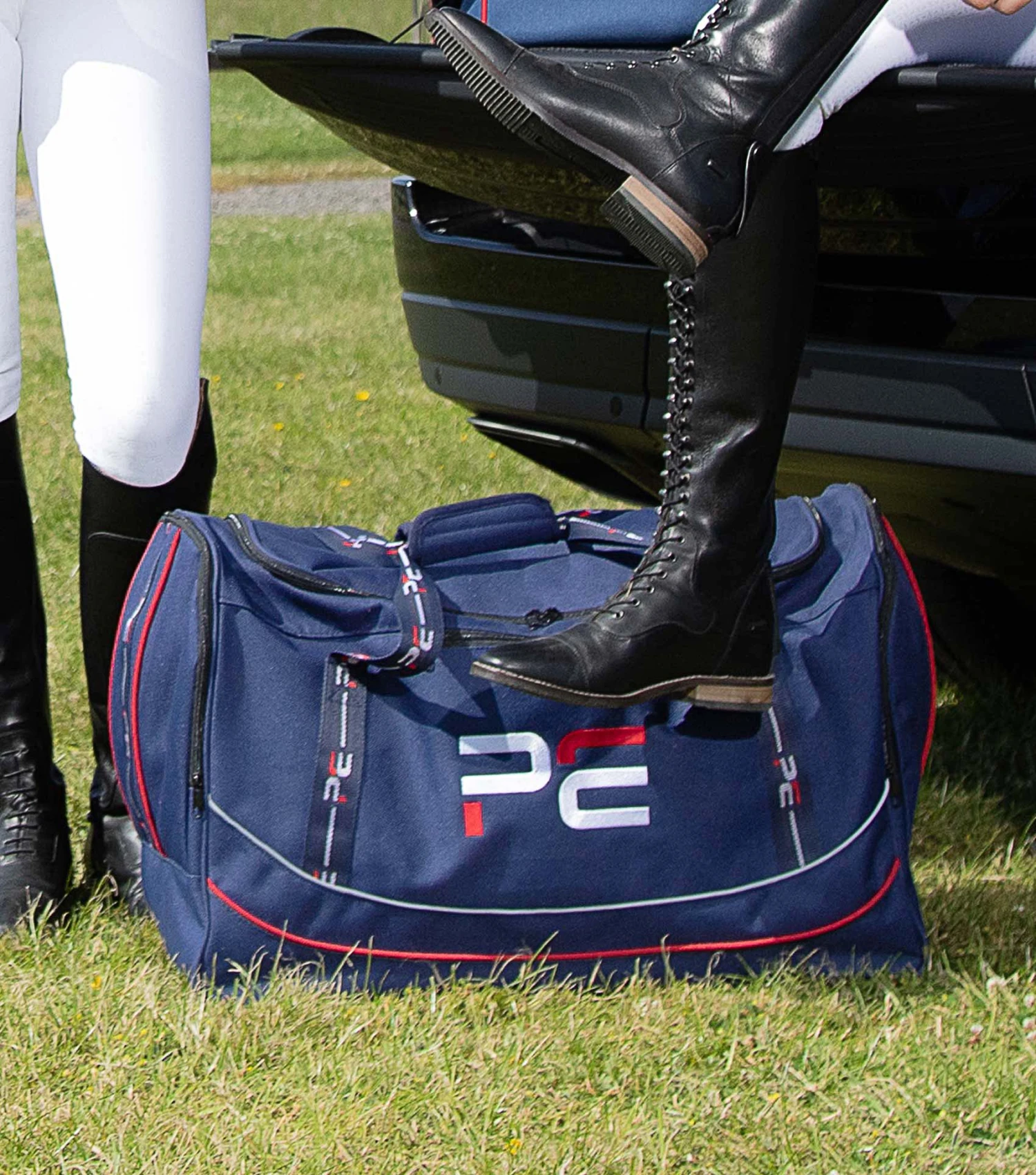 With a reinforced bottom this equipment bag is ideal for carrying a range of equestrian equipment and sturdy carry straps with a Velcro wrap-around handle allow for comfortable and secure grip when carrying. Finished with sporty style lines and signature PE branding.