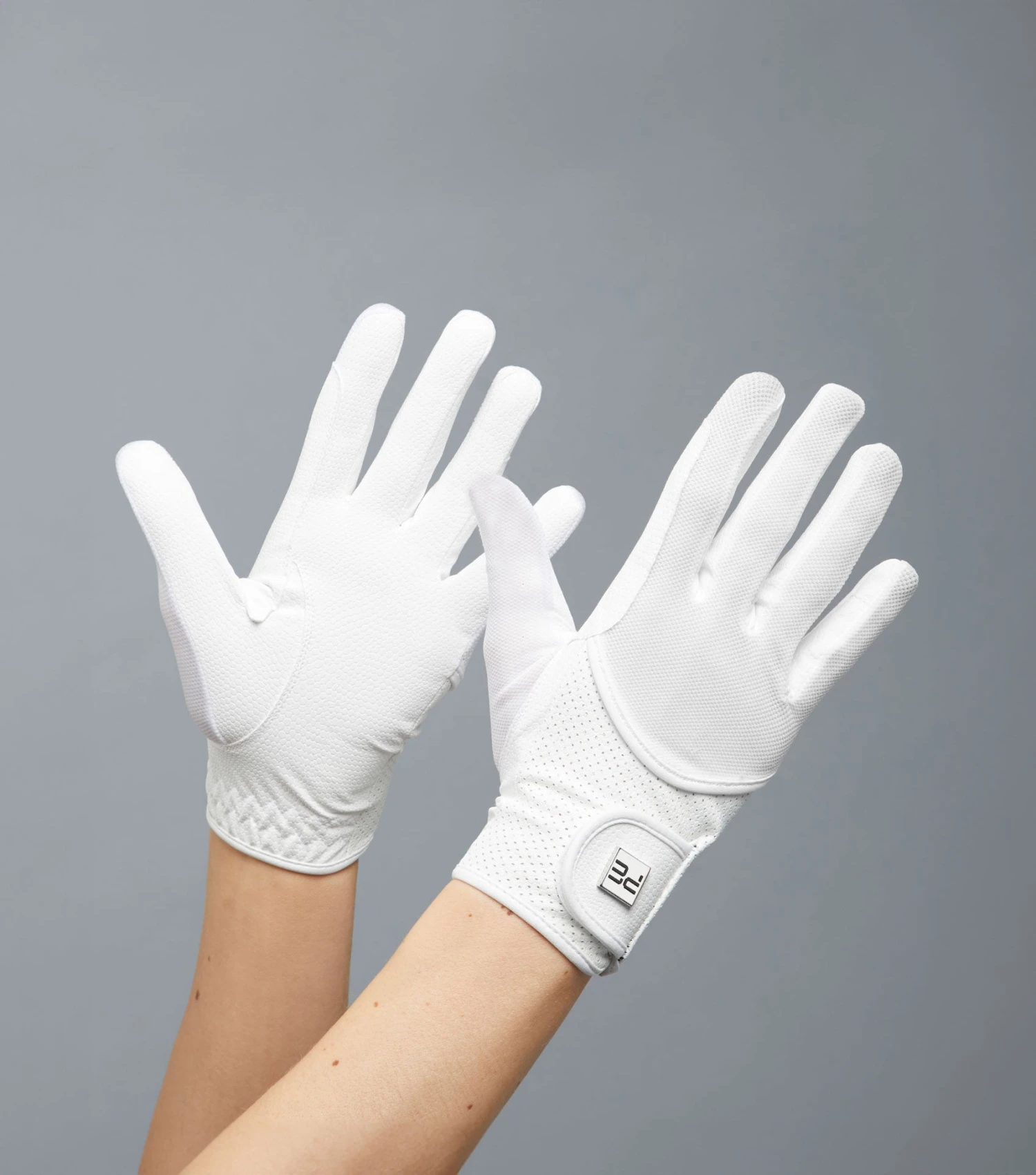 The palm of the glove is made from lightweight synthetic leather, providing optimum grip on the reins. A touch screen panel on the index finger and thumb allows for use of your phone without removing your gloves. Complete with Velcro closure with an elegant PE branded badge, these riding gloves are ideal for your everyday equestrian activities and competition use.