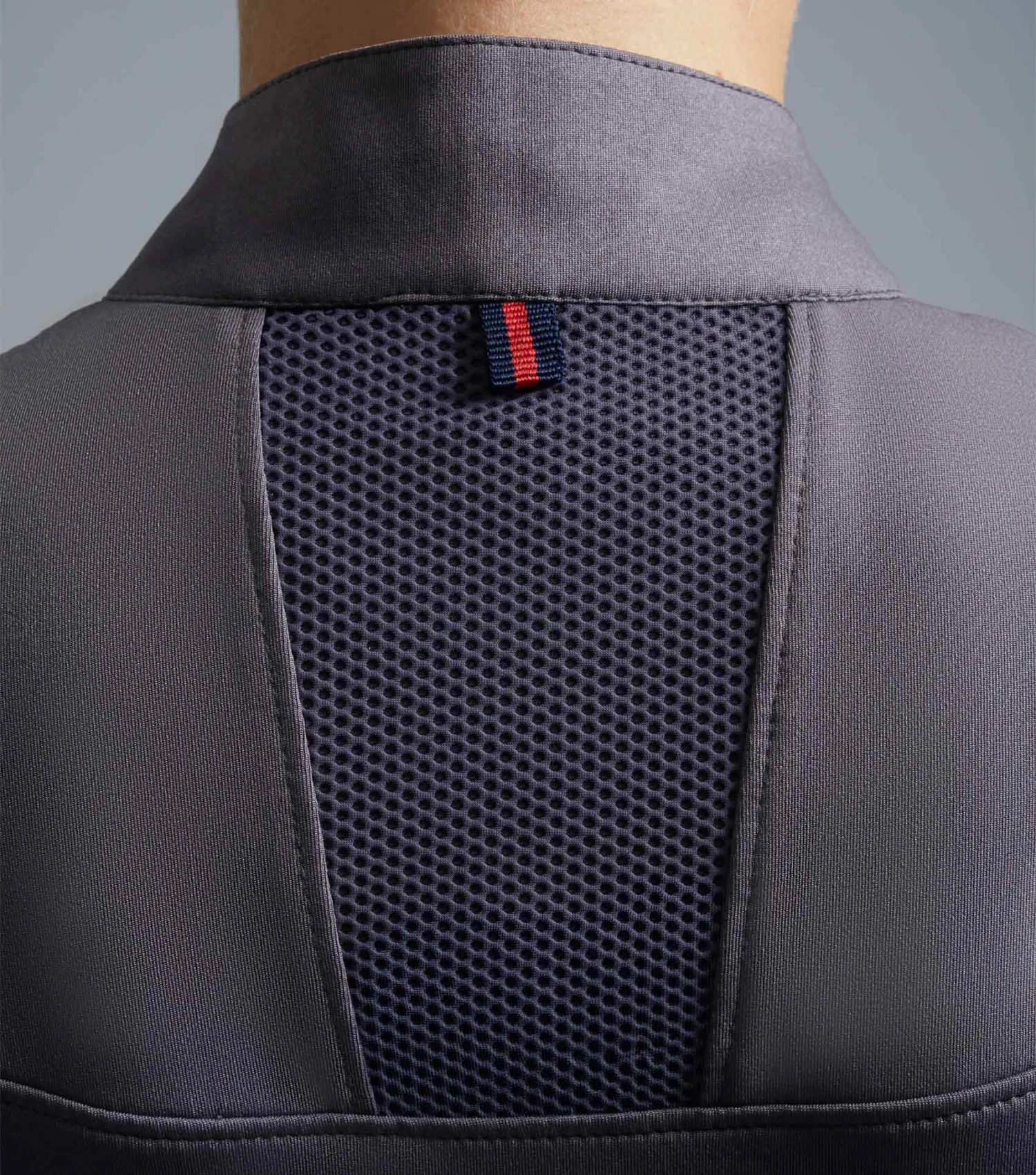 To compliment the mesh sports panels, pleated fabric features over the sleeve edge for a layered dimension. A ¼ YKK zip adorns the standard height collar and flattering seamlines create a panelled look which enhances the silhouette.