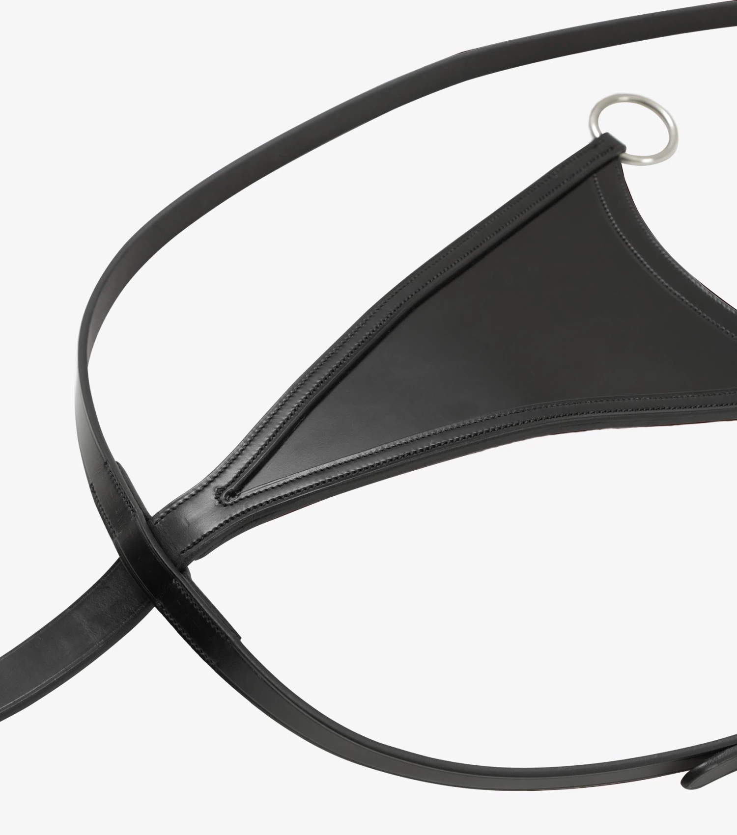It can be easily fitted to the horse and adjusted around the shoulder and girth in order to achieve an ideal fit. The neck straps on this martingale are joined with leather forming what is known as a ‘bib’, this helps keep the riders reins together and also stops the horse reaching back and grabbing the neck straps.
