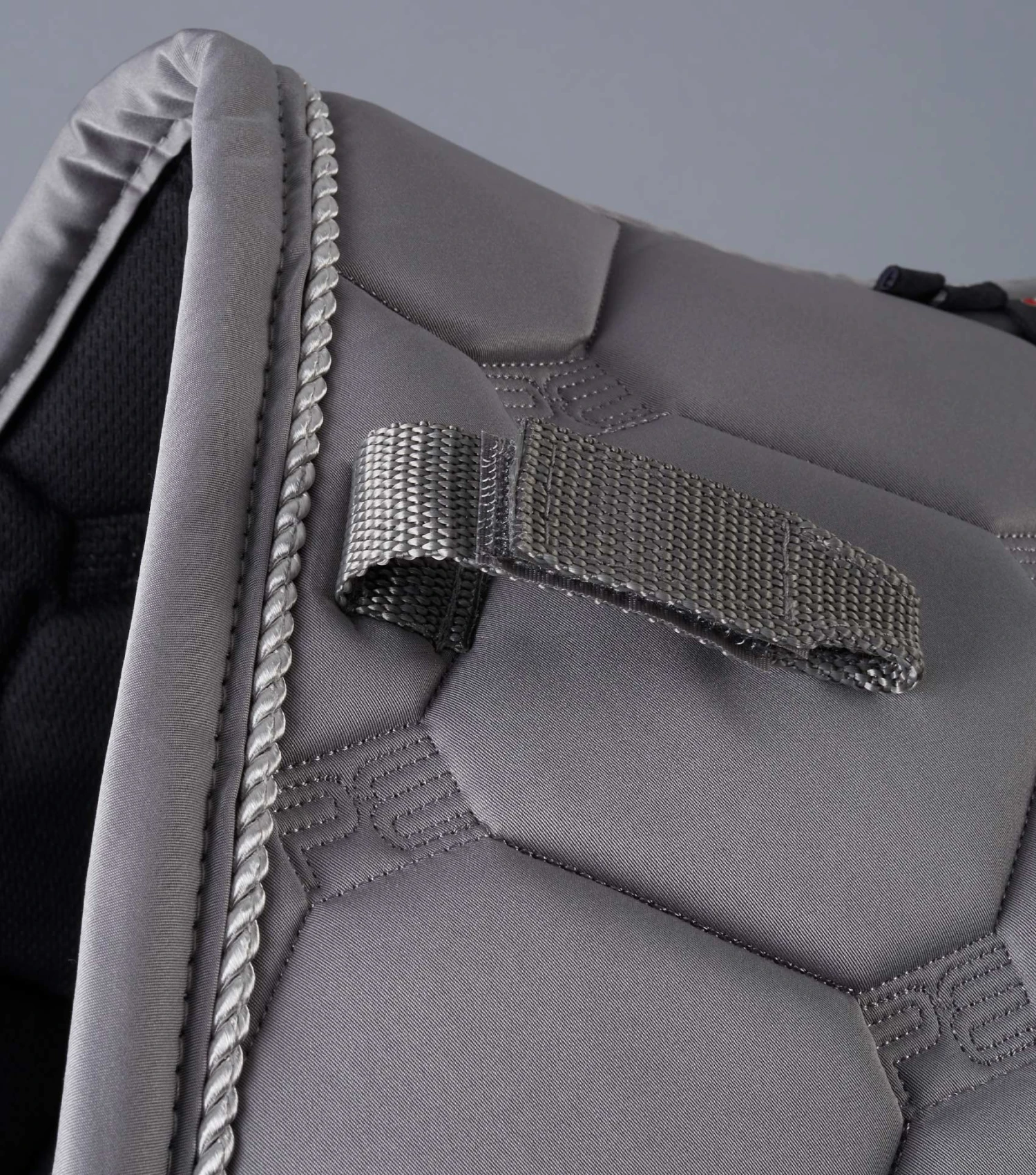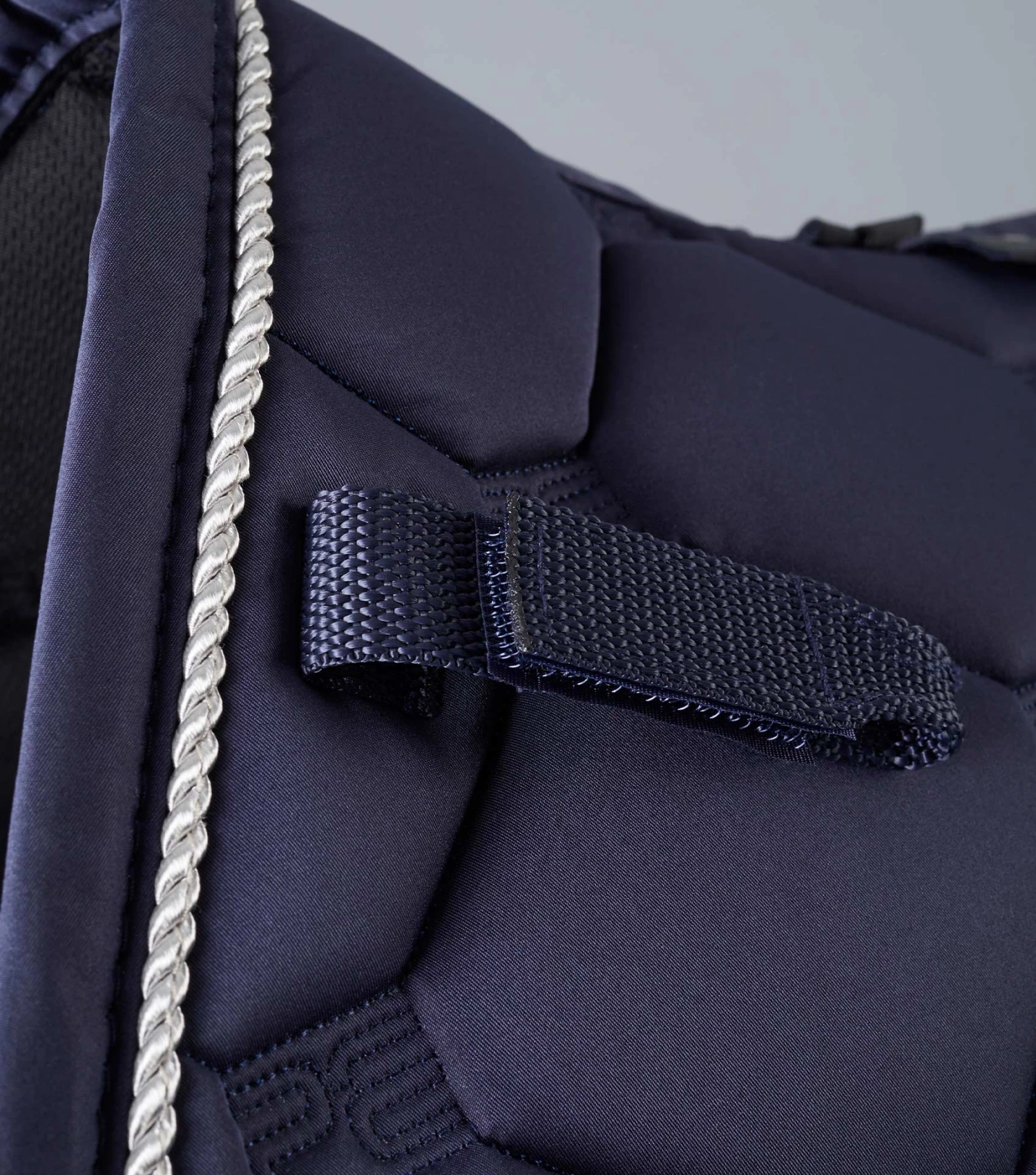 The Saltare Close Contact GP/Jump Square provides luxury styling with a signature PE diamond quilting. Crafted from lavish, high-quality materials, this GP/Jump saddle pad has a sleek matte satin finish to the fabric, creating an elegant aesthetic.Â