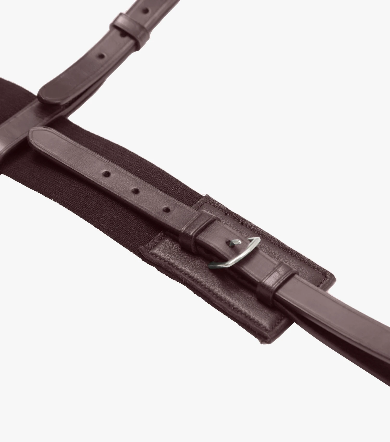 It is made from a combination of the finest quality Italian leather and elastic materials. The two inch wide elasticated panel attaches to the girth straps on either side and is held securely in place with the help of a leather neck strap. Both the leather neck strap and the girth attachments are adjustable so that you can fully customise the fit to suit your horse’s individual needs.